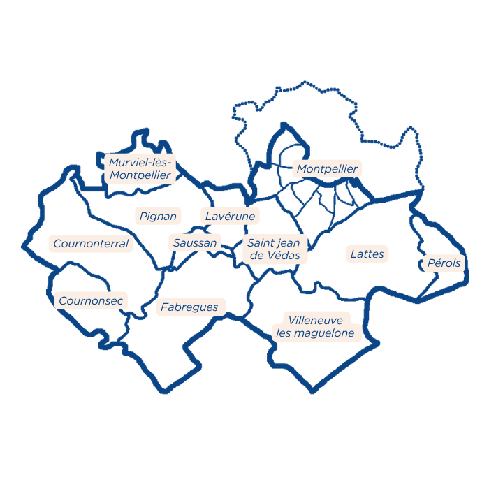 Le territoire de santé de la CPTS Montpellier Sud et Ouest (MSO), couvre les quartiers Sud et Ouest de Montpellier, ainsi que 11 communes voisines.