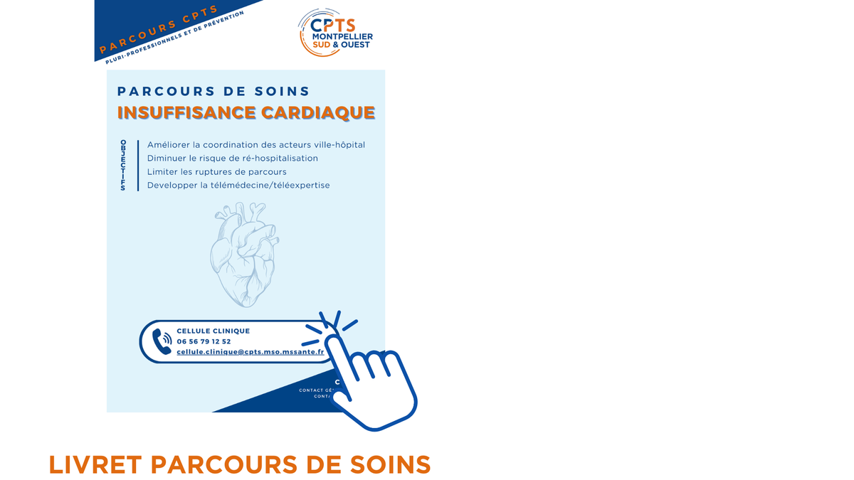 Le parcours de soins Insuffisance Cardiaque de la CPTS MSO a été créé en lien avec le Professeur François ROUBILLE, chef du service de réanimation du CHU de Montpellier. Il a pour but d’assurer un suivi personnalisé et coordonné entre les professionnels soignants (libéraux et hospitaliers) du territoire et notre Cellule de Coordination.