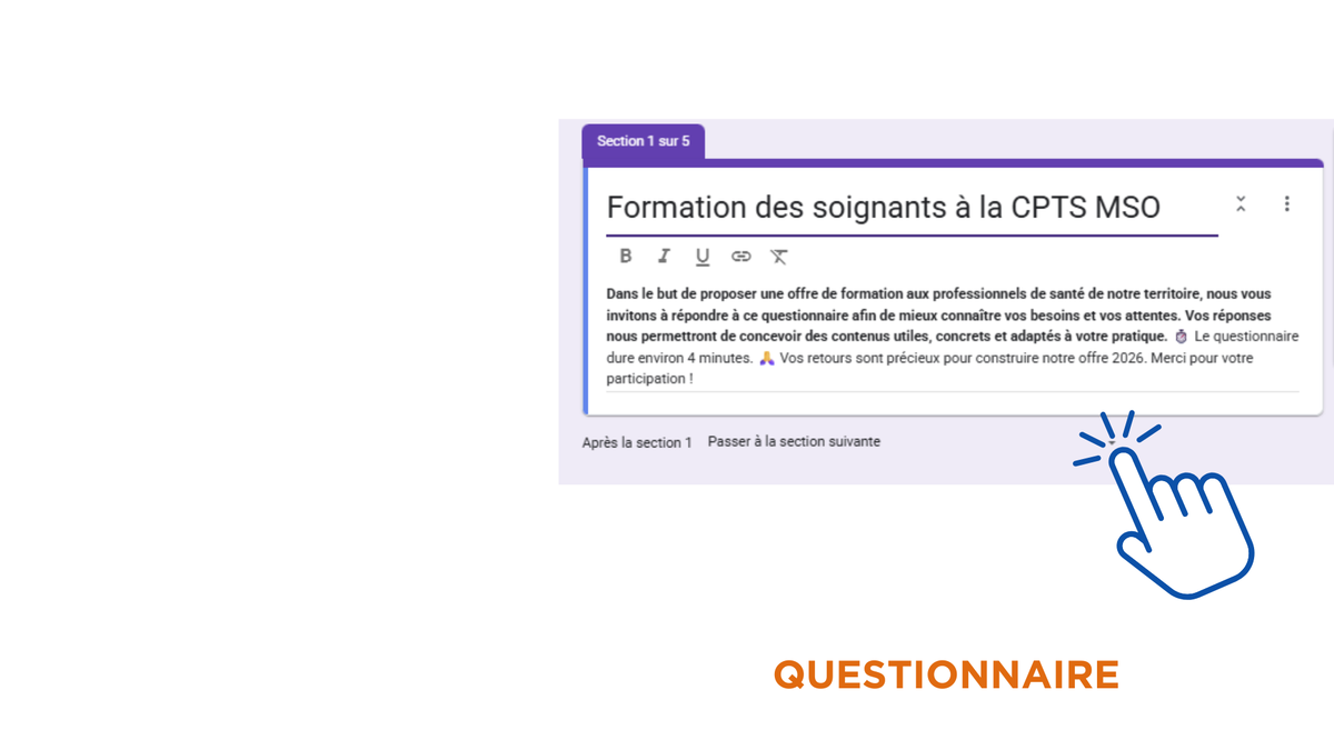 Et parce que vos besoins et vos idées comptent, nous souhaitons construire cette offre de formation avec vous, afin qu'elle soit adaptée à vos réalités de terrain.